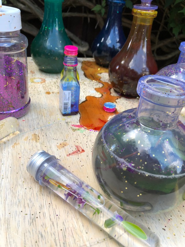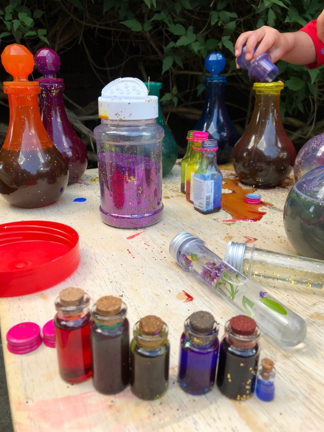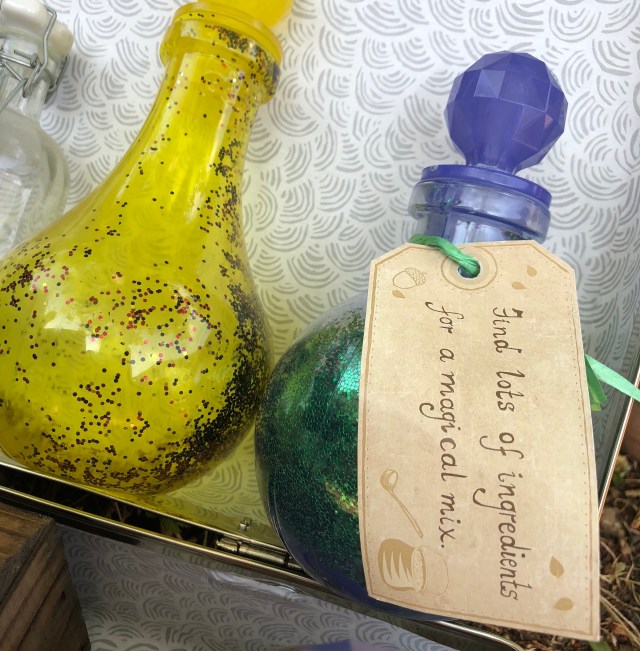 This was the start of our potion making, where we ended up created really exciting, erupting concoctions in the Tuff Tray!