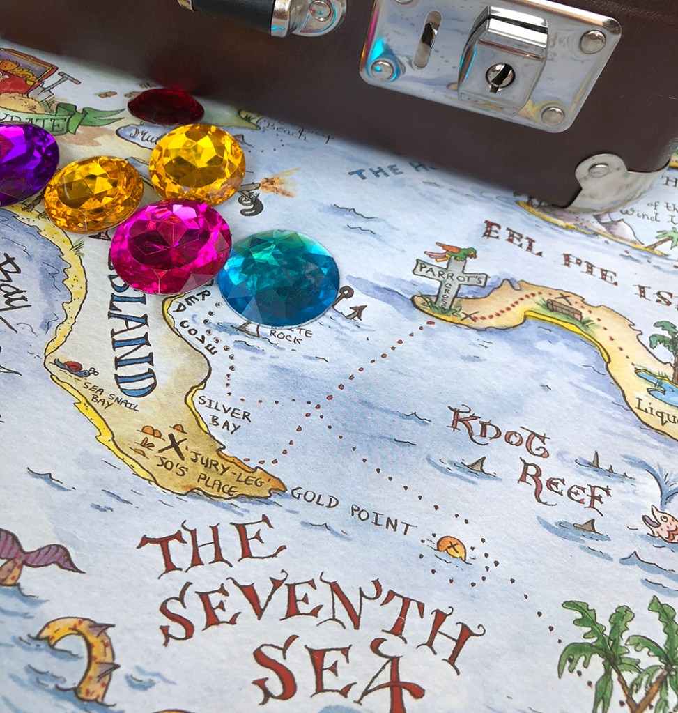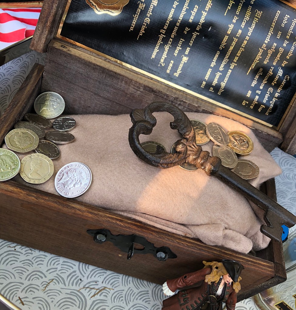 Pirates are a popular theme with my two boys so this Pirate themed suitcase was a real hit. They loved the Treasure Map, Key and the Treasure! I even included some rolled up papyrus paper for them to create their own map. I included two stories so that we could sit in the garden and read too.