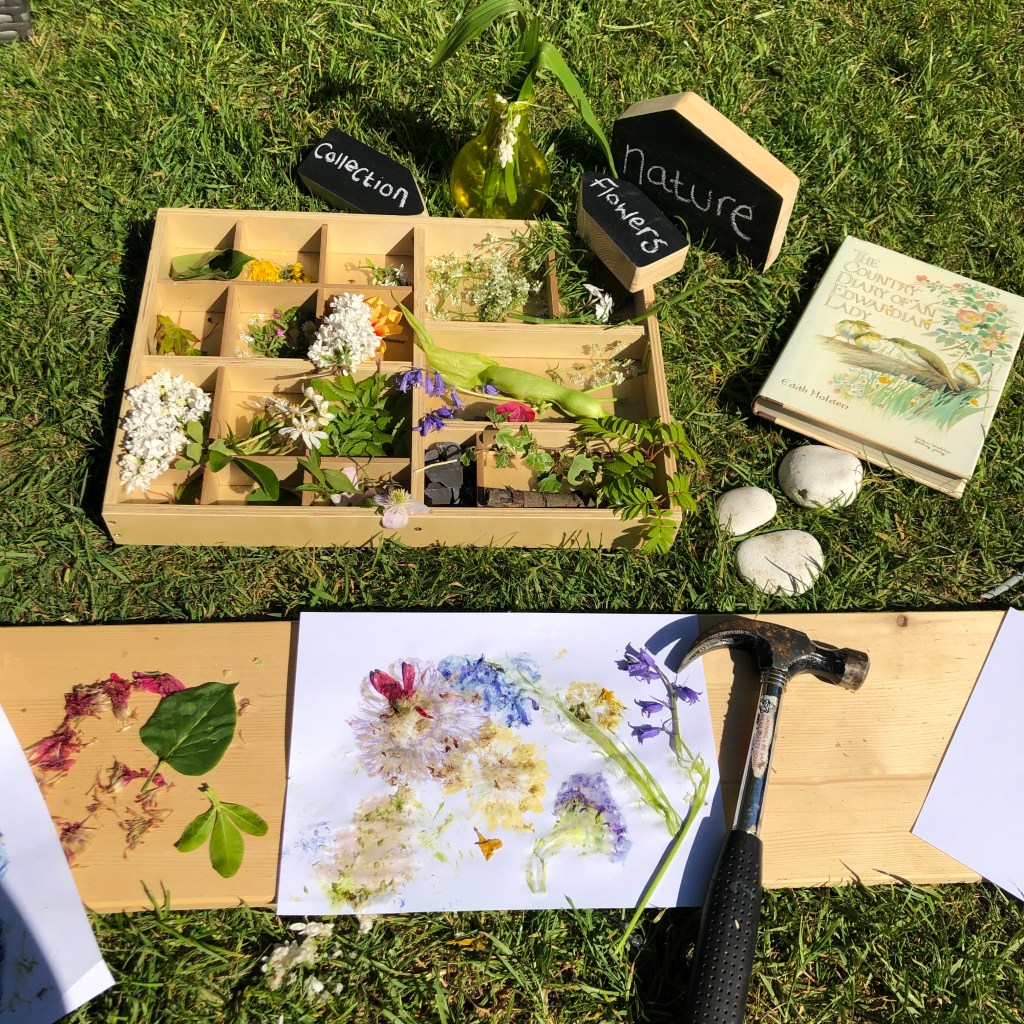 Why not try pounding your flowers with a hammer inbetween two sheets of plain copy paper to create wonderful abstract art – ensuring that none of your collected flowers go to waste.