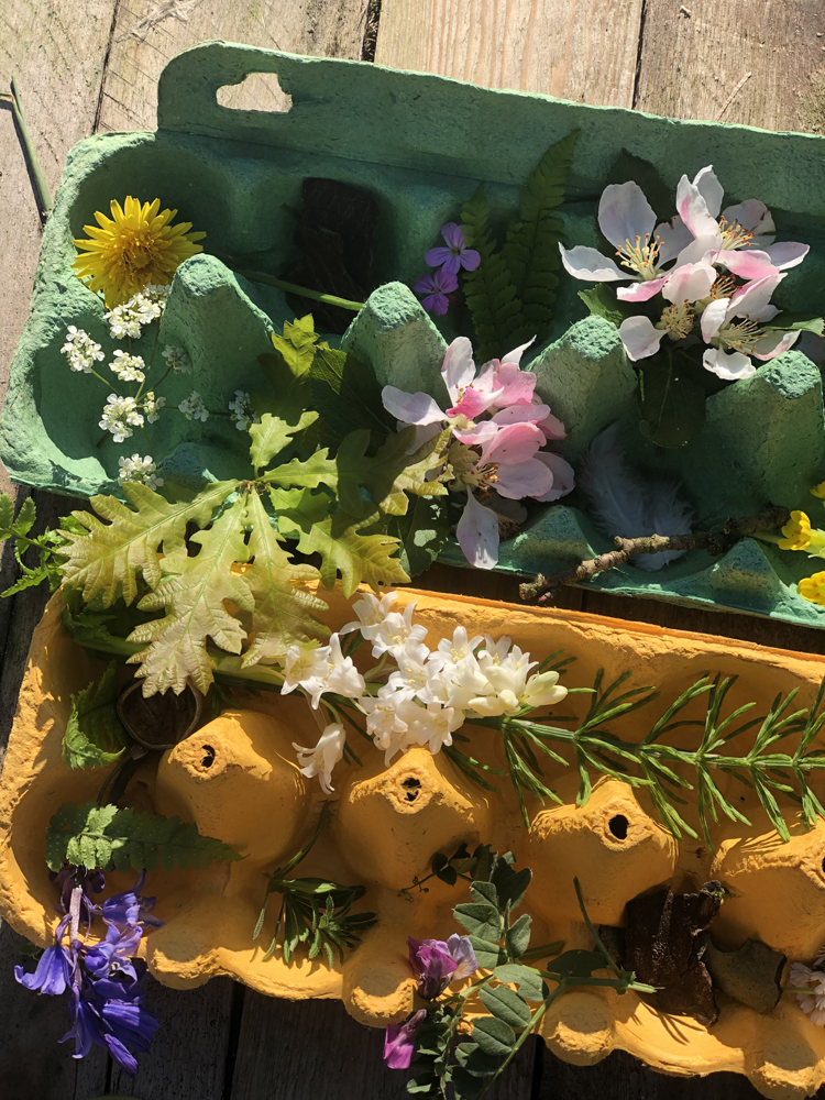 We use left over egg boxes to sort our collection. Using each compartment to lay out our beautiful finds.