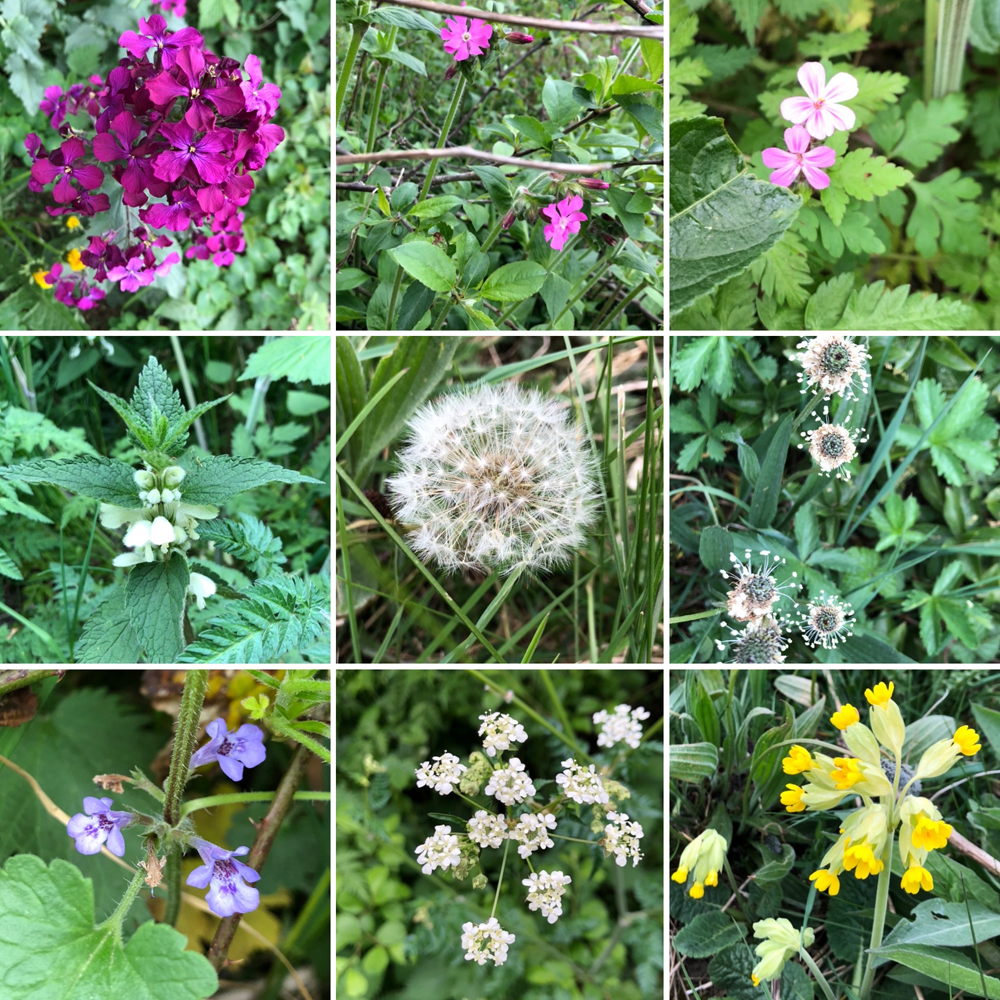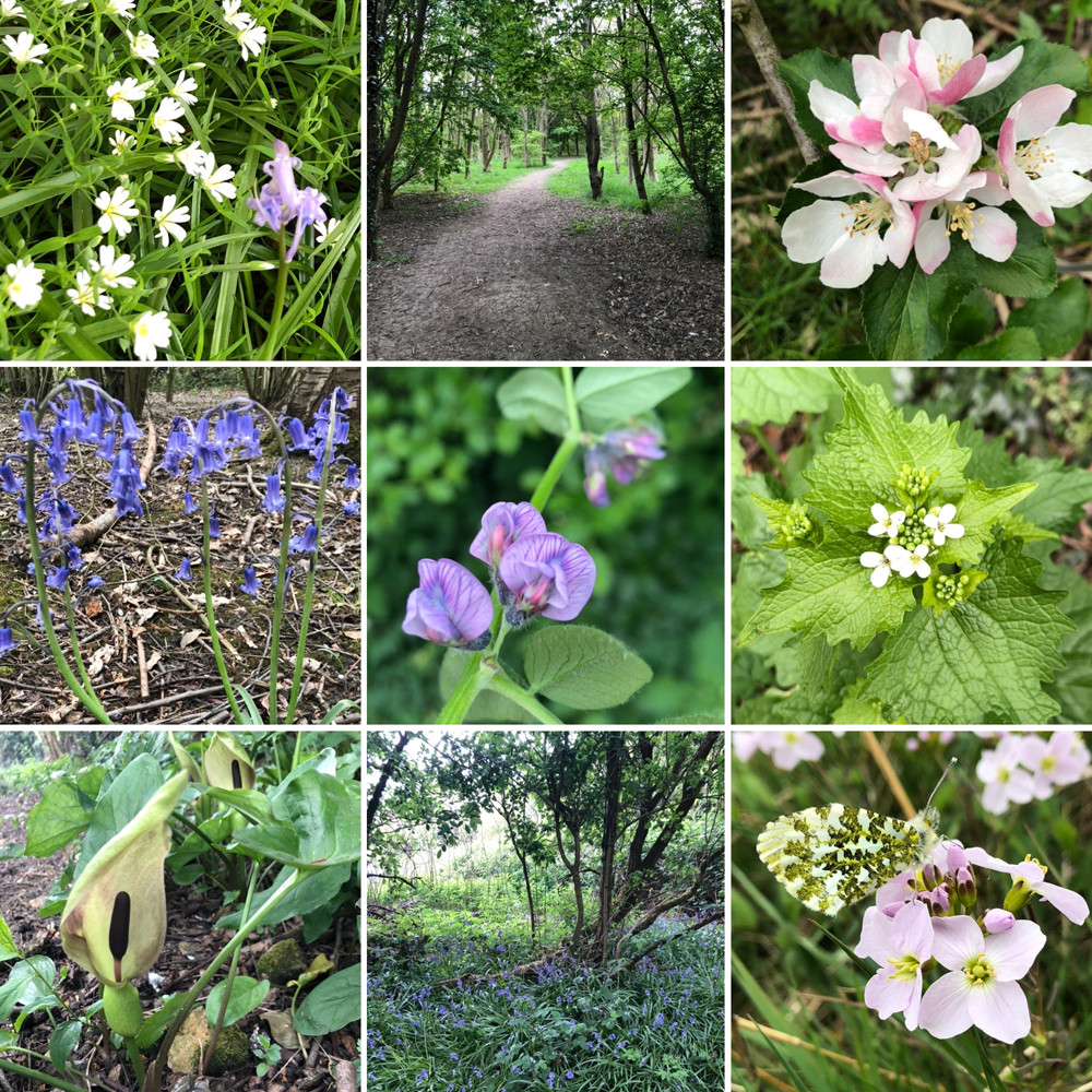 Identify as many minibeasts and flowers as you can. We see butterflies and Bees, spiders the most on our walks.