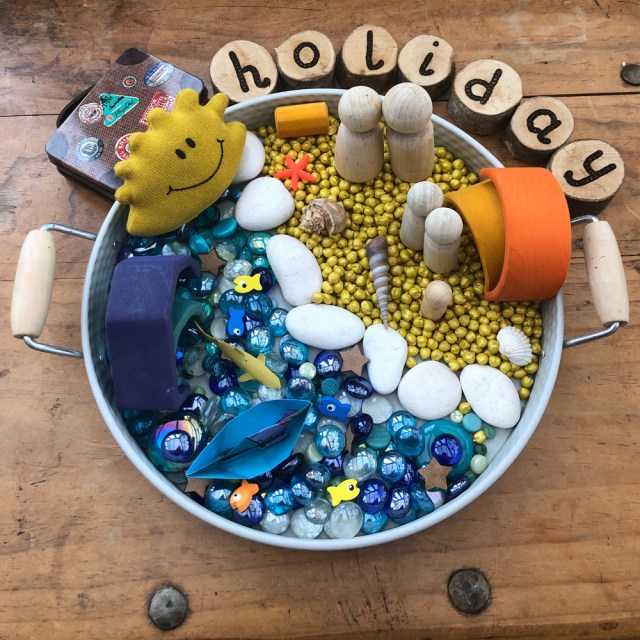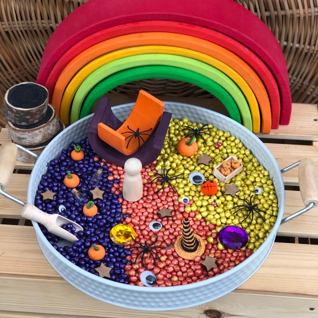 We use our chickpeas in many of our play trays. The children love scooping and pouring them into vessels and containers.