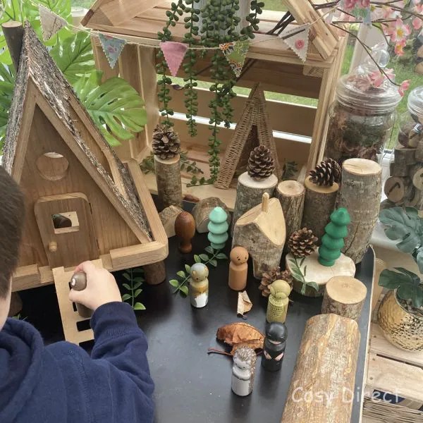 Perfect for display and setting up crate shelfies. Ideal for small world play and storage too. We love these wooden crates and roof top shapes. They add interest and height to tuff tray play too.
