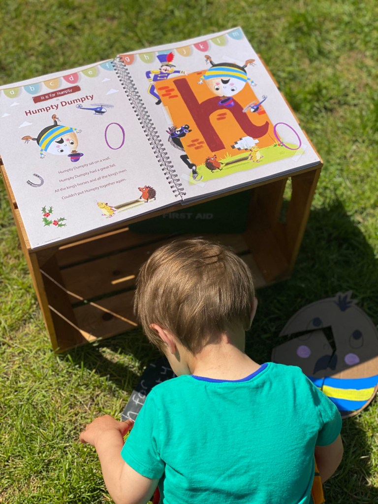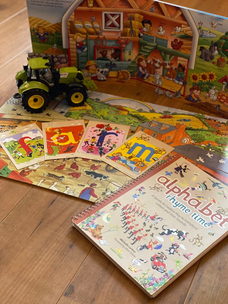 One of our favourite resources is the Alphabet Rhyme Time Book. With a rhyme for every letter of the alphabet, and, a double page spread of activities and recommended books for each rhyme.
