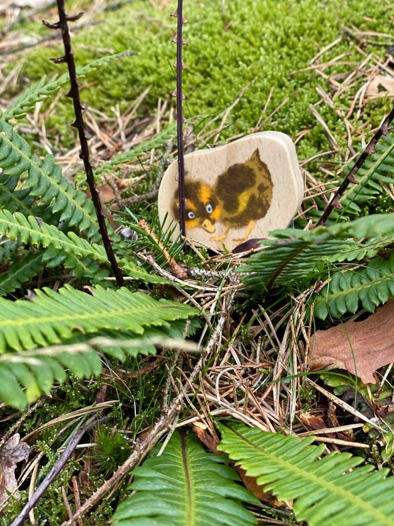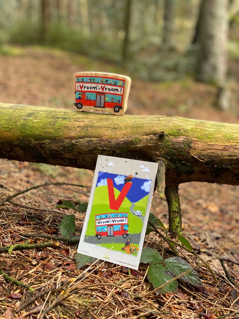 I also stick the postcards in my bag and take them to the woods with us for an adventure. I hide the cards and wooden characters for the children to hide and seek out. Once they find a card we sit and sing that rhyme together.