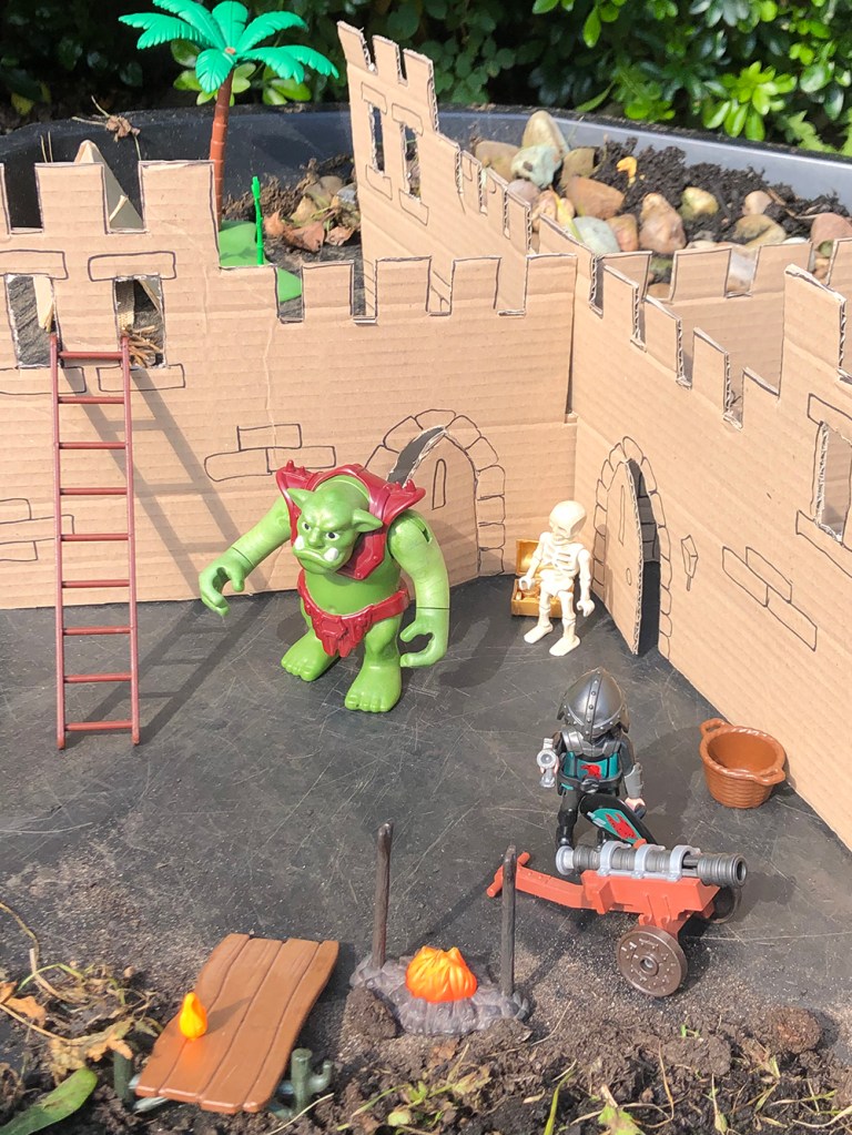 The boys then tested it out and set up their own small world scene in the Tuff Tray.
