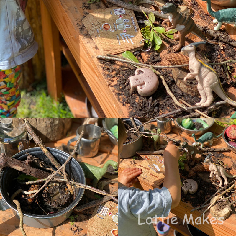 - Dinosaur World: If you have small plastic dinosaurs, create a dinosaur world in the mud. Children can make muddy footprints, nests, and landscapes for their prehistoric creatures.