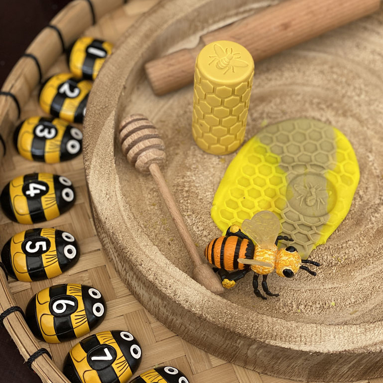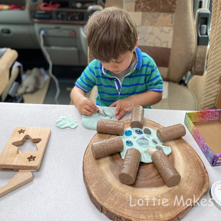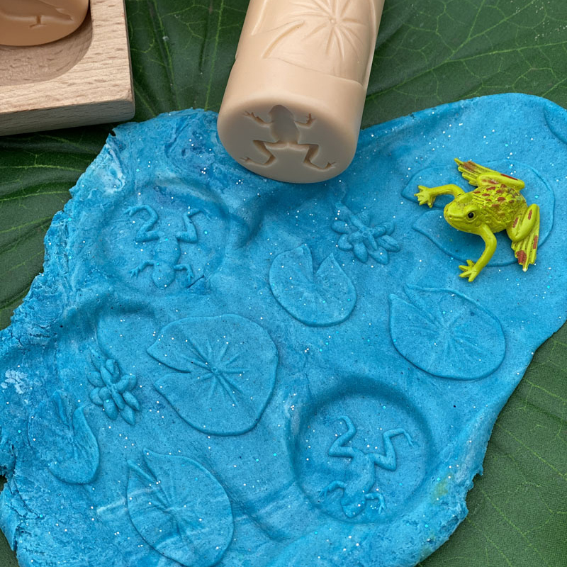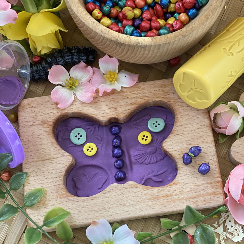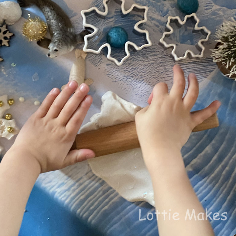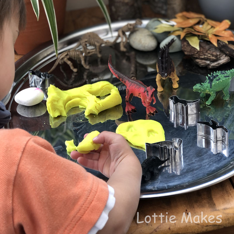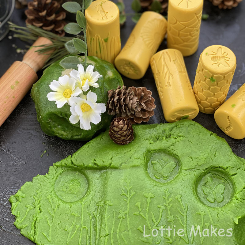 8. Pattern making and early mark making skills: Roll playdough out for a larger surface area to print patterns. Items as simple as a fork, lego, small world animal footprints. Use a stick to mark make in the dough. We particularly love the playdough accessories and rollers from Yellow Door Education.