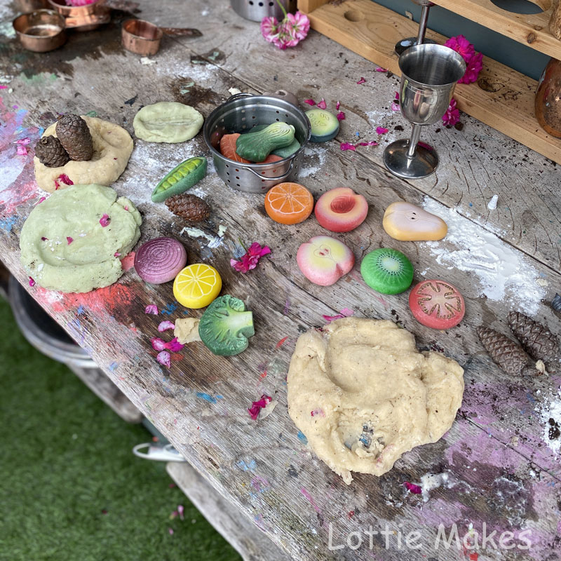 1. Creativity and Imagination: Playdough fosters imaginative play, allowing children to create anything they can imagine, which helps develop creativity and problem-solving skills. Try Play dough cupcakes with sprinkles and candles. Make creatures with sticks and natural treasures, make dough faces, snakes. Use cookie cutters for making fun shapes to decorate, use rollers and play dough tools.