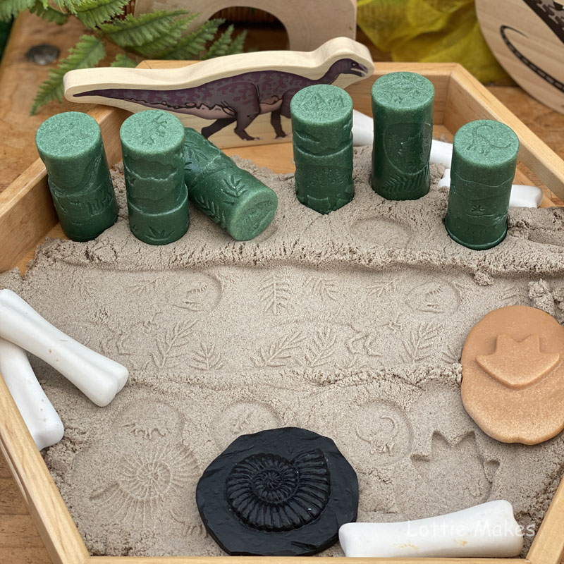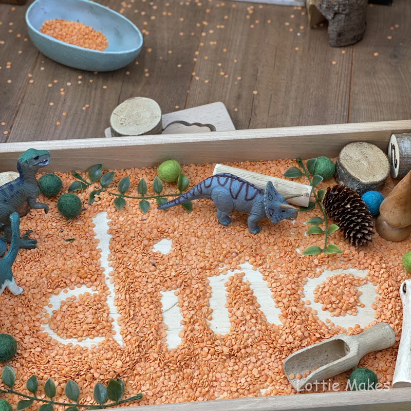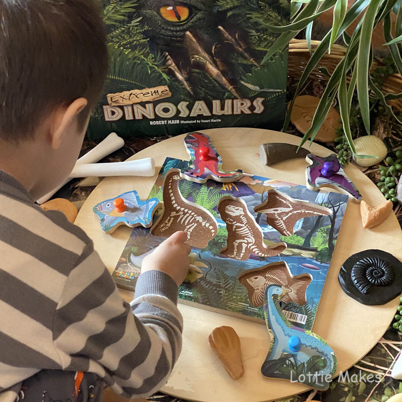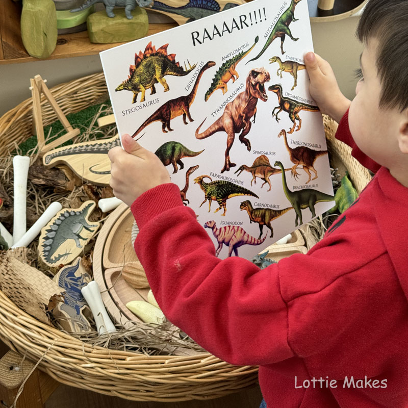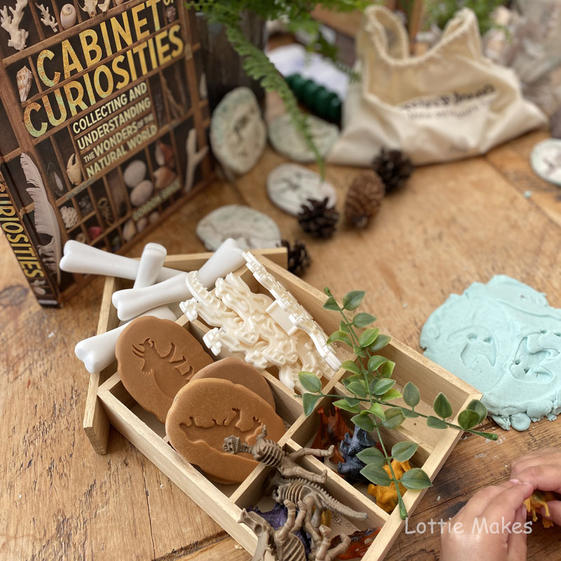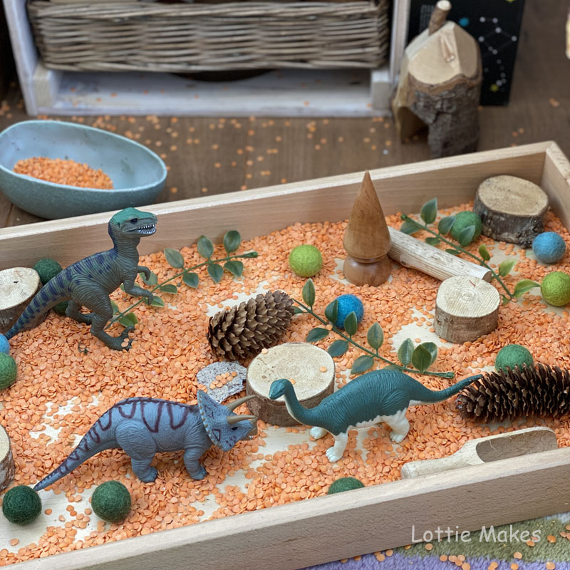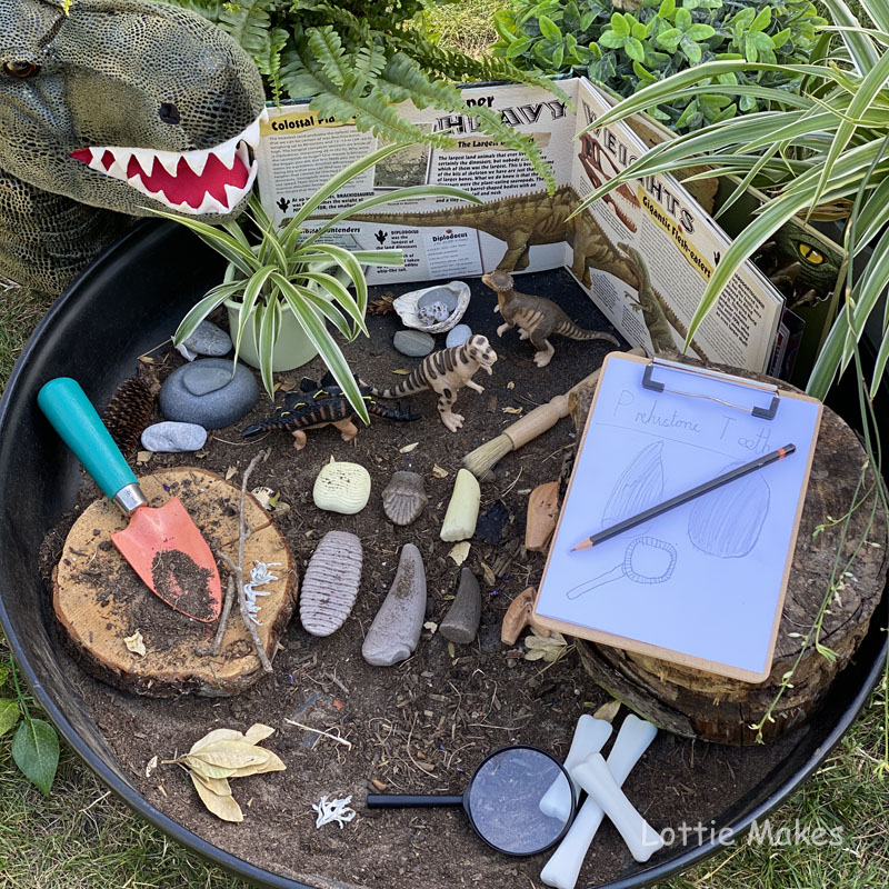 Why not add a tinker tray filled with dinosaur themed bits and bobs from Yellow Door to explore.