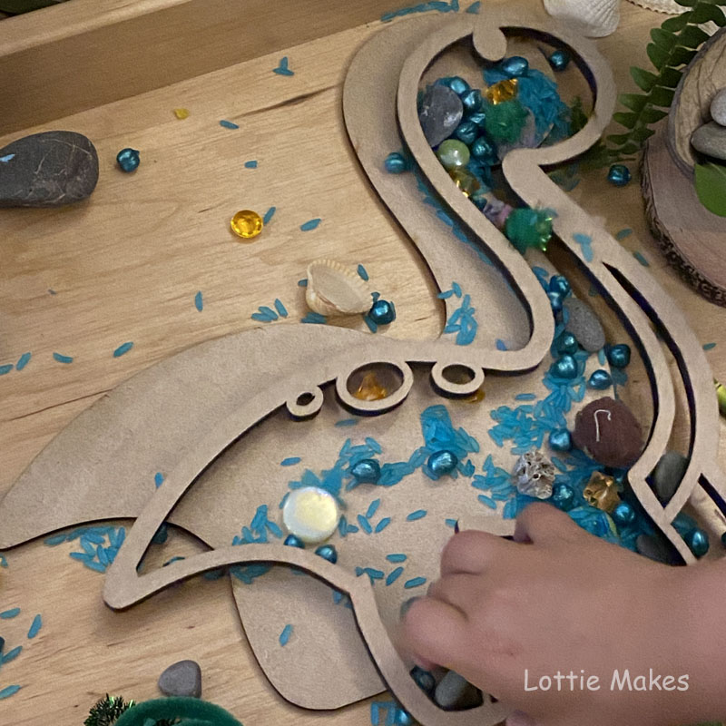 Dinosaur loose parts sensory tray play