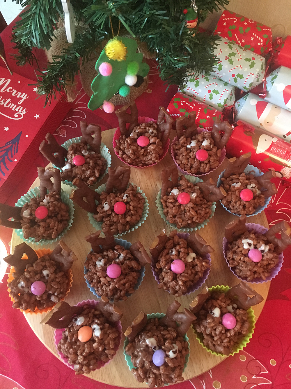 These deliciously cute Reindeer Chocolate crispies are a favourite of ours at Christmas time. We usually make a batch to take with us when visiting family or for family parties.